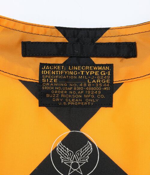 軍需衣料品史上、類を見ない派手なプリントが施されたこのジャケットはラインクルーマン用として米空軍が1950年代初頭に採用した。戦闘機を地上にて昼夜を問わず停止位置まで誘導するラインクルーマンの任務は、危険が付きまとう基地エプロン(駐機場)において身の安全を確保するため、戦闘機を操縦するパイロットから目立つ必要があった。このジャケットが支給された当時、戦闘機を誤った方向へ誘導するのを防ぐため「飛行機の整備時には着用しないこと」という警告タグが付属しており、このジャケットが如何に威力を持ったジャケットであったかが窺える。