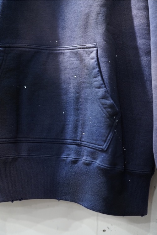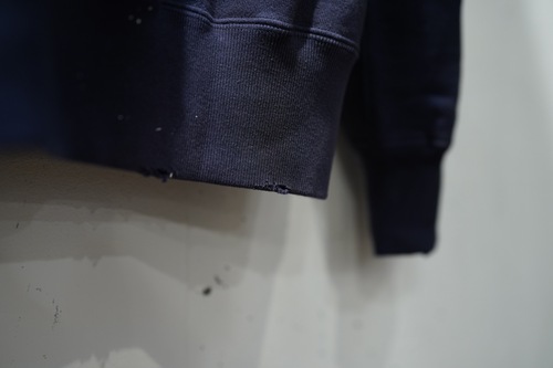 こちらは加えて、ペンキやウォッシュによりヴィンテージ加工の施されたモデルとなり、退色具合やリブ周りのダメージも雰囲気抜群な一着となります。
