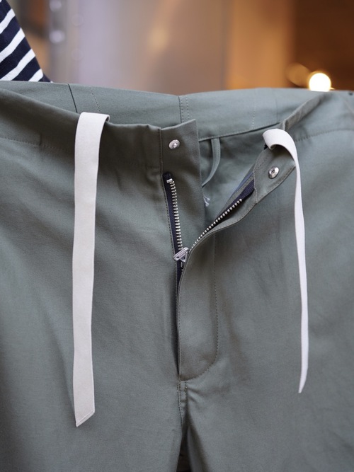 今季は40 年代USミリタリートラウザーに採用されている、双糸のコットン100% のサテン生地を裏使いしています(バックサテン)。