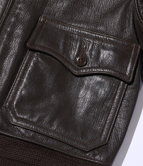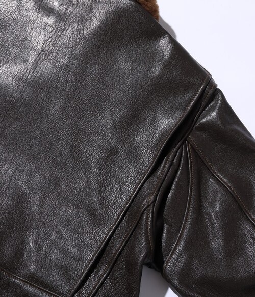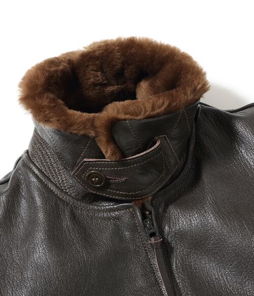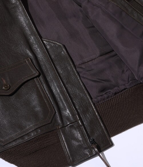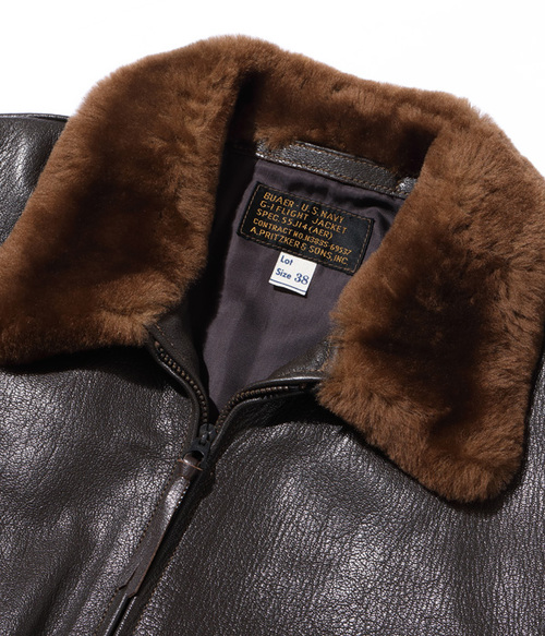 このG-1は、1951年の同時期に空軍のB-15Cも製造納入していたA.PRITZKER & SONS社が手掛けたモデル。メインラベルにはサイズ表記が無く、サイズチケットを差し込む仕様。フルベジタブルタンニングで鞣された革は固く締まりがちだが、それを柔軟性のある繊維質を持つゴートスキンが解消してくれる。