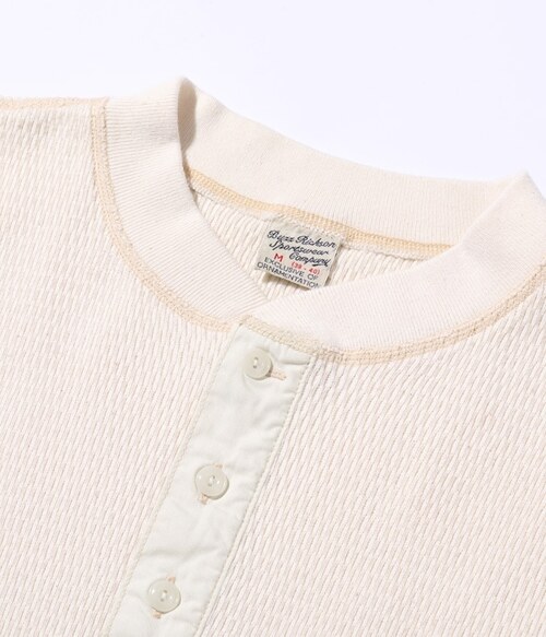 BUZZ RICKSON'S - THERMAL HENLEY NECK T-SHIRT - NATURAL