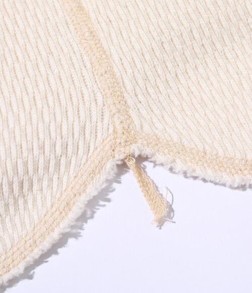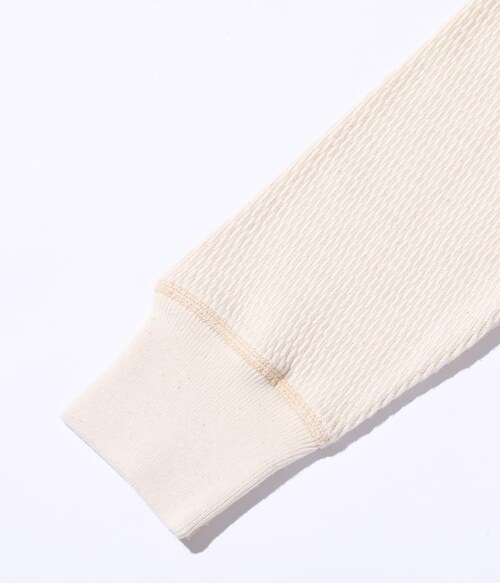 10番手の糸を使用したオリジナルのワッフルヘンリーネックTシャツ。