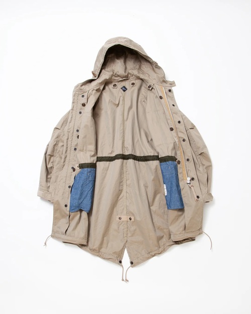 フィッシュテールパーカ特有のゆったりとしたシルエットに、フィールドジャケットのポケットデザインを組み合わせることで、当時存在した”幻のディテール”を再現しました。