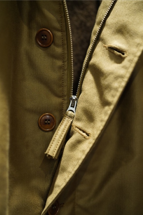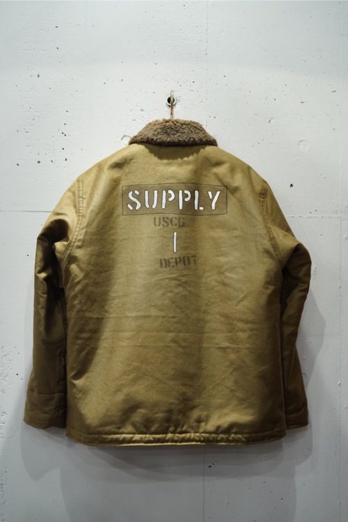 アメリカ海軍艦艇クルー向けに生産された代表的なデッキジャケットの初期型をモデルアップ。大戦末期から急ピッチで大量生産された余剰分がサープラスとして戦後の米国内に出回りモータースポーツに心酔する若者たちに受け入れられた。