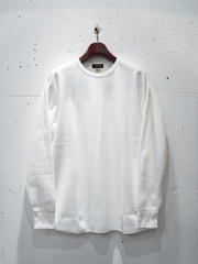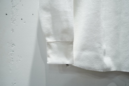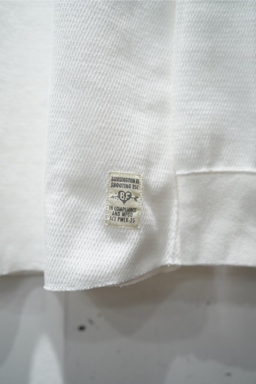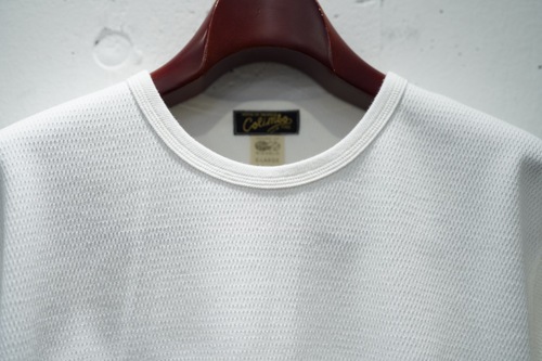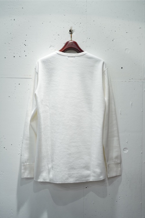 製品染めが生む独特な陰影。綿とポリエステルの染め分けでワッフル組織が立体的に際立つ、60年代由来のT/Cサーマルを再現。素材:コットン60%、ポリエステル40%