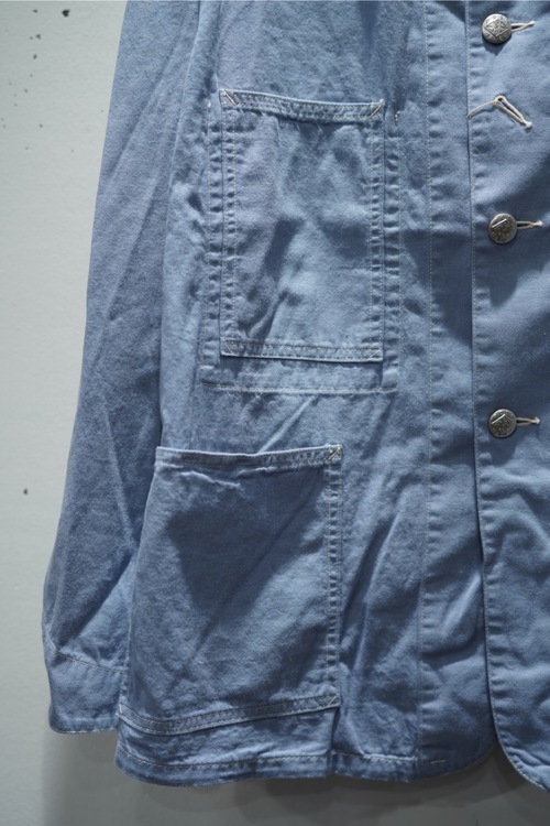 ビンテージの変形転がりポケットを持つカバーオールの二大巨頭である、SWEET-ORRとBLACK BEAR。その二つのPost O’Alls的フュージョンがSWEETBEARで、元々は定番1102 Engineers’ Jacketの兄弟モデルとして2000年代後半にリリースされました。バージョン1は、ラグランスリーブ+台襟及びチンストラップ付き、バージョン2はセットイン・スリーブ+台襟及びチンストラップ付き、そして今回のバージョン3は、セットインスリーブ+台襟なし、という最もリラックスしたバリエーションとなっています。
