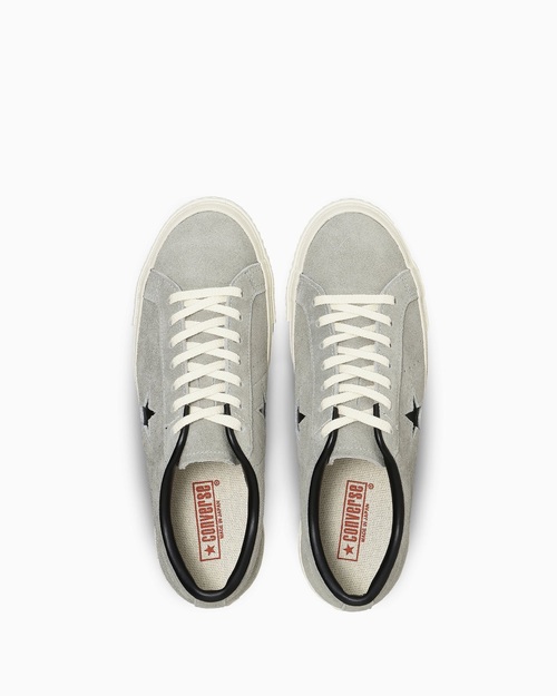 国産ワンスターの素材、カラーアレンジモデル。上質な国産スエードをアッパー全面に使用。クラシックなグレイに、ブラックの一つ星が特徴的なデザイン。ヒールラベルの下部に印字した「MADE IN JAPAN」の文字もポイント。グレイの1カラー展開。