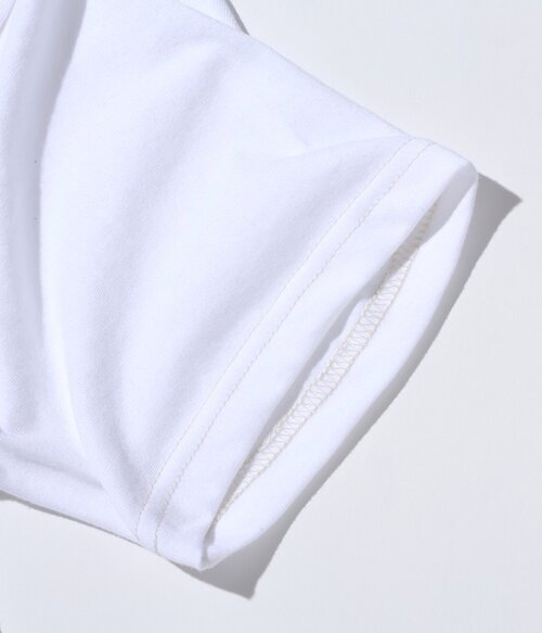これにより、通常のTシャツよりも首まわりが頑強な仕上がりとなっている。