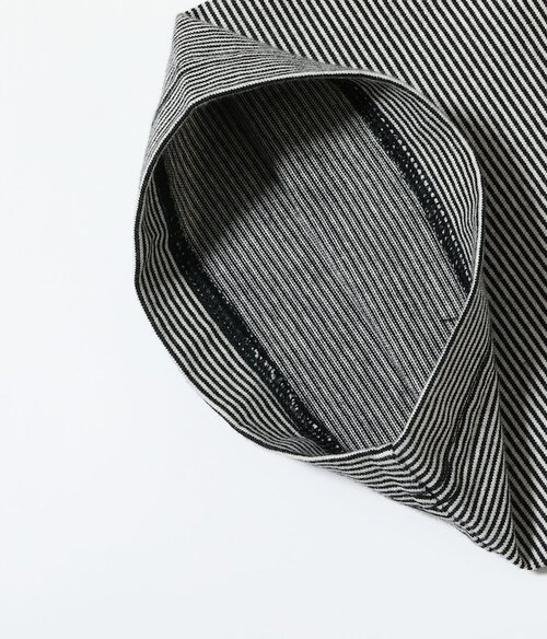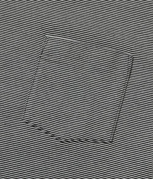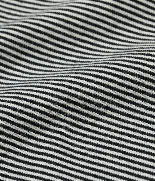 30番手の双糸を高密度に編み込んだ丈夫な質感のボーダーTシャツ。首元は14番手の糸で編み立てられたリブを挟み込むバインダーネック仕様で、肩や裾、袖口は2本針縫製を用いている。耐久性に優れ、ピッチ幅は非常に細かいボーダーを採用したデイリーユースに最適な一着。