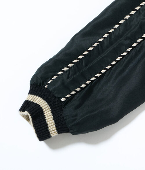 アセテートから色の分子が抜け、程よく光沢が抑えられた深みのある生地感。風合いを増したリブの質感。刺繍に用いられるレーヨン糸の褪色。これらのスカジャンの経年変化の魅力を再現し、購入時からヴィンテージさながらの風合いを楽しむことができるのがテーラー東洋のエイジングモデル。