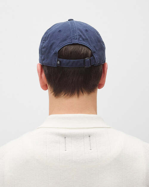 REIGNING CHAMP - COTTON CHINO LOW PRO MONOGRAM STRAPBACK CAP - WASHED NAVY